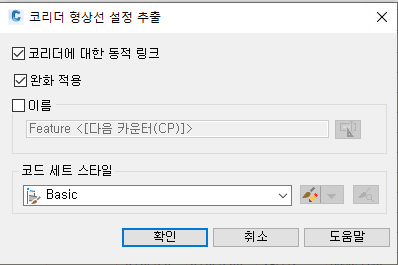 이 예에서는 코리더에서 형상선 작성 명령을 사용하여 형상선을 추출합니다. 연석 형상선의 선홍색 뒤쪽을 확대하여 선택할 수 있습니다.