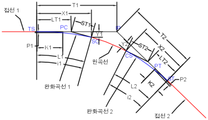 클로소이드 완화곡선은 다음과 같이 설명될 수 있습니다.