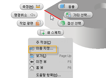 - 부품 파일에서 다른 부품에 구속되어 있거나 구속될 형상을 마우스 오른쪽 버튼으로 클릭하고 이름 지정을 선택합니다.