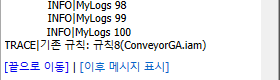 | 패널에서 메시지를 지울 경우 이전 메시지를 사용할 수 있으면 패널 맨 위에 탐색 링크가 표시됩니다. | iLogic 로그 패널은 한 번에 20,000개 메시지만 표시하도록 제한됩니다. 20,000개가 넘는 메시지를 입력하는 경우 20,000개 제한에 도달한 후에 작성된 메시지에는 패널 맨 아래의 탐색 링크에서 액세스할 수 있습니다. |