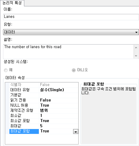 이 값을 통해 도로의 차선 수를 나타내는 특성이 작성됩니다. 값은 1~5까지의 정수 중 하나여야 합니다(1과 5도 포함). 이 특성에 대한 기본값은 없습니다.