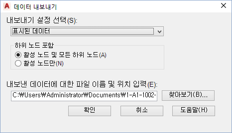 내보내기 프로세스 중에 사용된 파일 경로 및 파일 이름을 표시합니다. 그대로 적용하거나 변경할 수 있는 기본 파일 경로 및 파일 이름을 제공합니다.