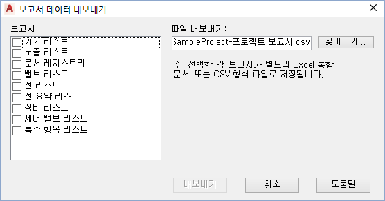 내보내기 버튼은 하나 이상의 보고서 유형을 선택하고 내보내기 파일을 지정한 경우에만 활성화됩니다.