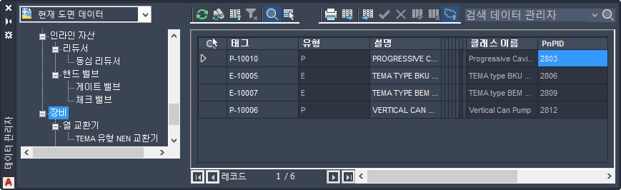 | 줌 | 데이터 뷰에서 선택한 행에 해당하는 도면의 구성요소 또는 선을 줌합니다. |