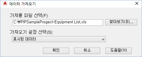 프로젝트 또는 도면 데이터가 포함된 Microsoft® Excel 스프레드시트 또는 CSV(쉼표로 구분된 값) 파일을 가져옵니다.