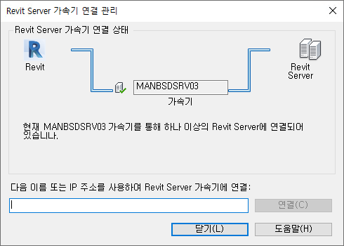 서버 기반 작업 공유 성능을 향상하려면 Revit Server 가속기를 사용하여 중앙 모델을 호스트하는 Revit Server에 연결합니다.