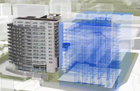 조정 모델을 Revit 모델에 링크한 후 가시성/그래픽 대화상자를 사용하여 해당 가시성과 투명도를 정의합니다. 투명도 설정을 사용하여 조정 모델과 Revit 모델을 구분합니다.