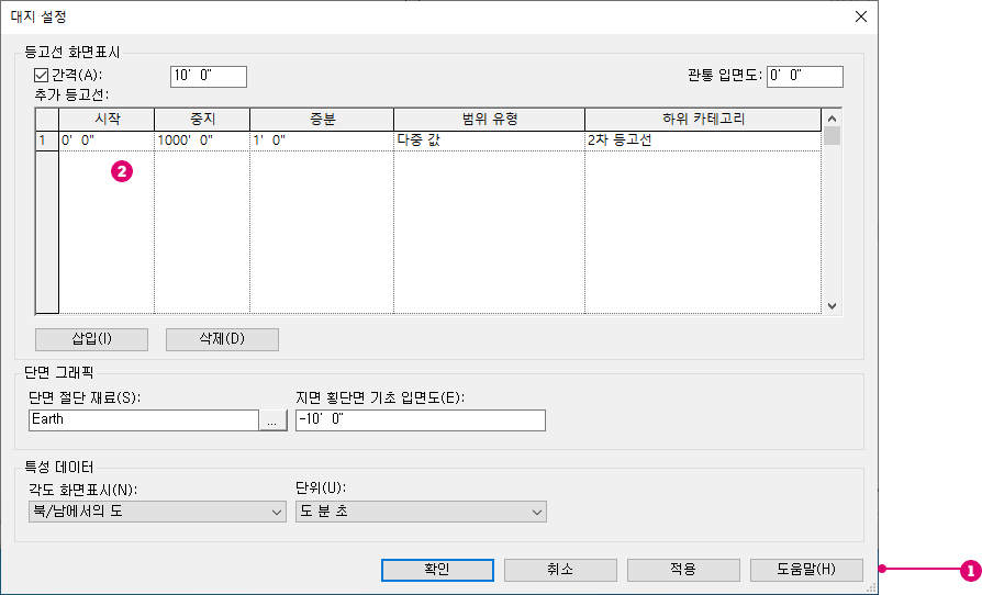 으로 조정할 수 있습니다. 대화상자를 더 크게 만들면 대화상자에서 스크롤하지 않고 추가 등고선 설정