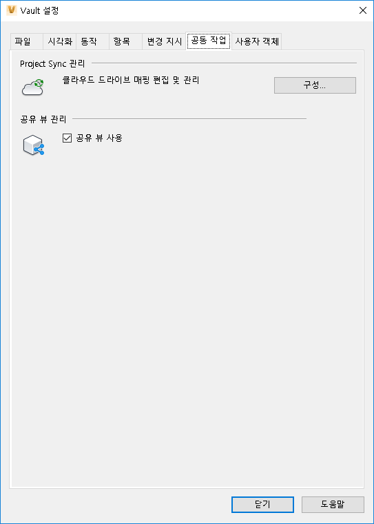 관리자는 공유 뷰 및 Project Sync를 사용하거나 사용하지 않도록 설정하고 관리할 수 있습니다.
