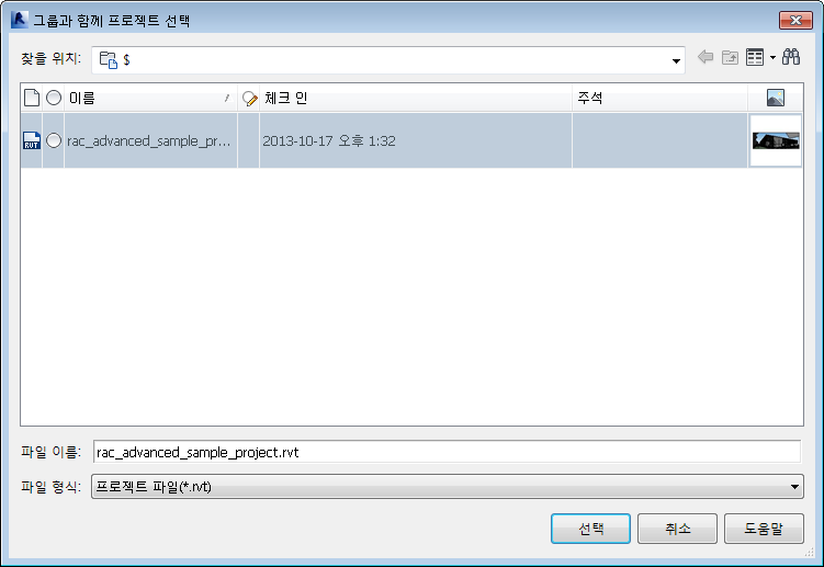 - .rvt 파일을 선택하고 선택을 클릭하여 어떤 그룹을 사용할 수 있는지 확인합니다.