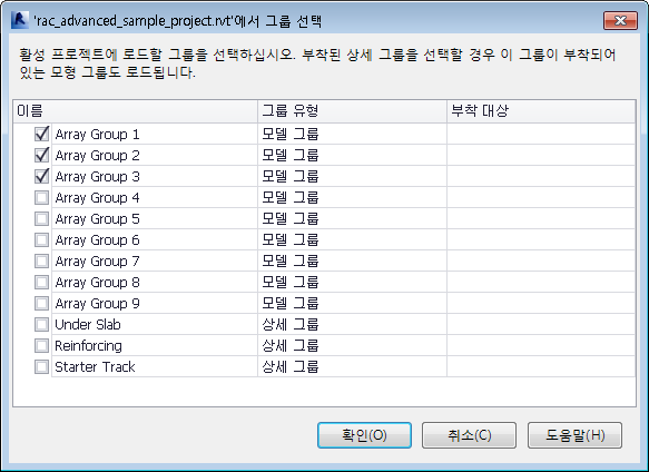 - 파일에 부착된 상세 그룹 유형이 있고 해당 그룹이 선택된 경우 모든 하위 파일 및 해당 모형 그룹이 로드됩니다.