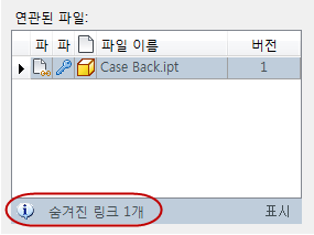 항목 파일 링크가 두 개 이상 있는 경우 숨겨진 링크의 수가 창 왼쪽 아래에 표시됩니다.