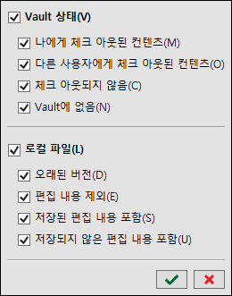 또한 Vault 상태 또는 로컬 파일을 선택하고 해당 범주의 모든 옵션을 선택할 수 있습니다.