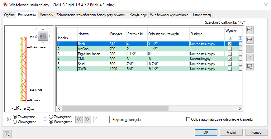 - W definicji stylu ściany należy określić stronę wewnętrzną i zewnętrzną ściany, aby umożliwić bardziej dokładne wymiarowanie AEC.