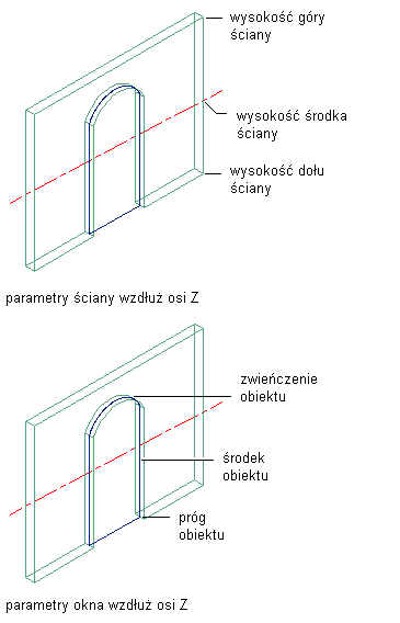 użyć jako punktu odniesienia środka wysokości ściany | w polu Położenie pionowe (Z) dla opcji Od wybierz ustawienie Środek wysokości ściany. |