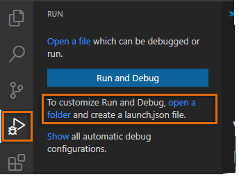 Note: A folder must be opened before debug configurations can be added, and debug configurations should not be added to a workspace but to a folder only. See