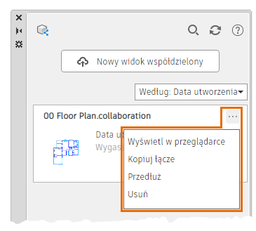 Za pomocą opcji w menu Więcej można zarządzać widokami współdzielonymi.