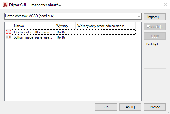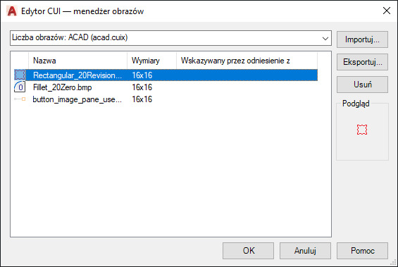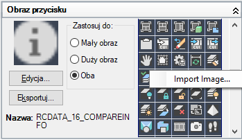 Obrazy niestandardowe dla poleceń można importować i eksportować.