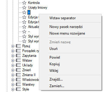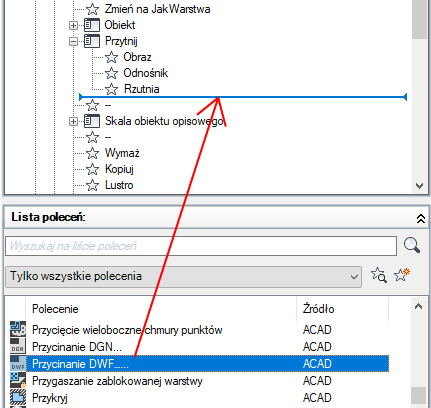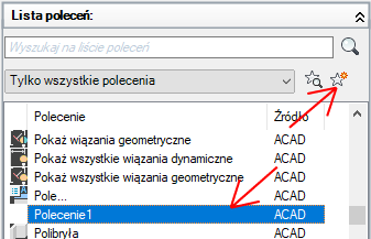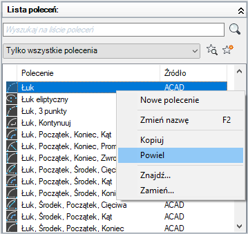 1. Na karcie Dostosuj, w panelu Lista poleceń wyszukaj polecenie, które chcesz powielić.