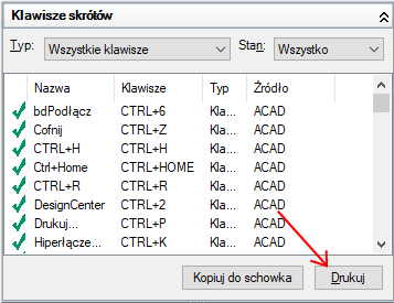 - W panelu Skróty wybierz typ i stan skrótów klawiaturowych, które mają zostać wydrukowane.