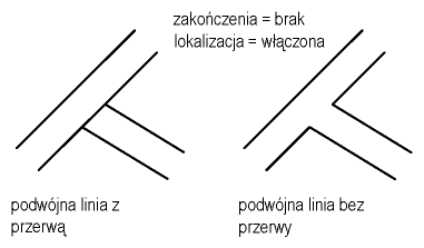 Istnieje możliwość określenia, czy w linii podwójnej, linii lub łuku ma pojawić się przerwa podczas lokalizowania względem nich linii podwójnej.