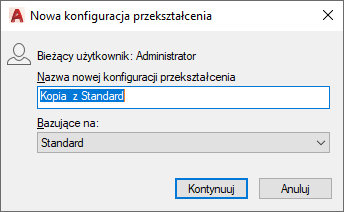 PRZEKSZTAŁĆDWG (polecenie) Wyszukiwanie : Konfiguracje przekształcenia > Nowy
