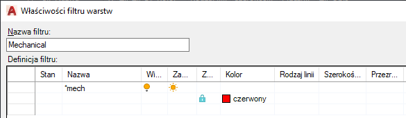 Ten filtr został nazwany Mechaniczny, a definicja filtru zawiera następujące kryteria: