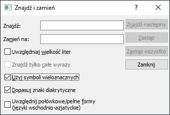 Zostanie wyświetlone okno dialogowe Znajdź i zamień.