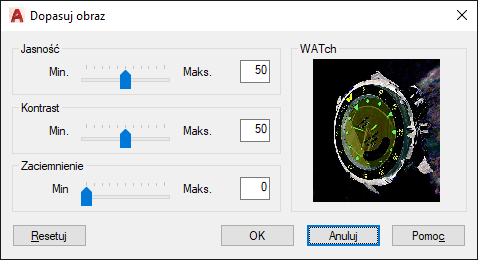 Dopasowywanie tych wartości zmienia wyświetlanie obrazu, ale nie wprowadza zmian do samego pliku obrazu.