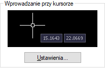 Opcja Wprowadzanie dynamiczne pozwala korzystać w obszarze rysunku z interfejsu poleceń umieszczonego obok kursora.