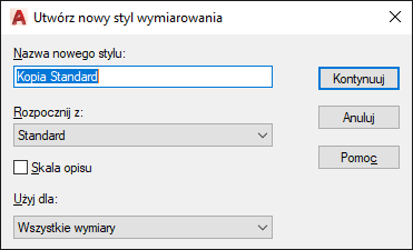 Nadaje nazwę nowemu stylowi wymiarowania, ustala styl, na którym będzie oparty tworzony nowy styl i wskazuje typy wymiarów, których ma dotyczyć nowy styl.