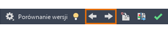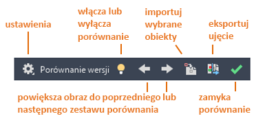 Zostanie otwarty pasek narzędzi Porównaj wersje, a na bieżącym rysunku pojawią się wyniki porównania. Ten pasek narzędzi zawiera kilka poleceń i opcji umożliwiających przegląd wyniku porównania i sterowanie nim.