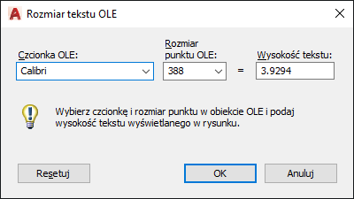 Obiekt OLE zostanie automatycznie przeskalowany, stosowanie do rozmiaru tekstu.