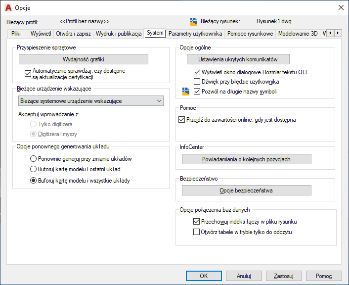 Niektóre opcje pokazane powyżej nie są dostępne w programie AutoCAD LT.