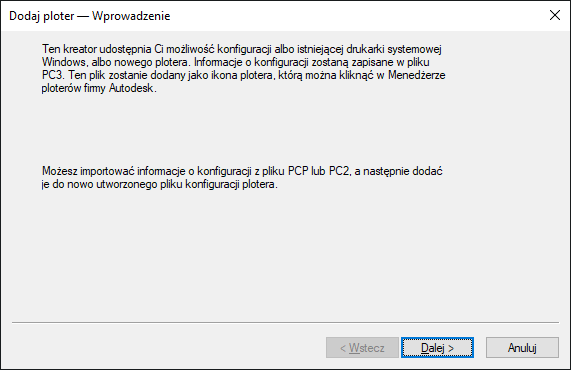 Kreator tworzy plik PC3, który można edytować w Edytorze konfiguracji plotera. Konfiguracje zapisywane są w folderze Plotters.