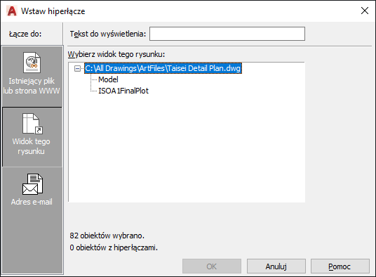 Otwiera okno dialogowe Wybierz miejsce w dokumencie umożliwiające wybranie nazwanego położenia na rysunku, dla którego ma zostać utworzone połączenie.