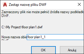 Umożliwia zmianę nazwy podkładania DWF, jeśli nazwa nie jest unikalna.