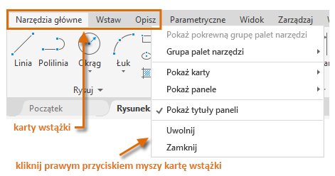 Uwaga: Aby przywrócić wstążkę w poprzednie położenie, kliknij dwukrotnie pasek tytułu.