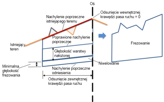 | Minimalna głębokość niwelowania | Minimalna grubość warstwy wyrównującej między spodem warstwy frezowania a spodem warstwy nakładki. | Liczbowy | 0,600 m |