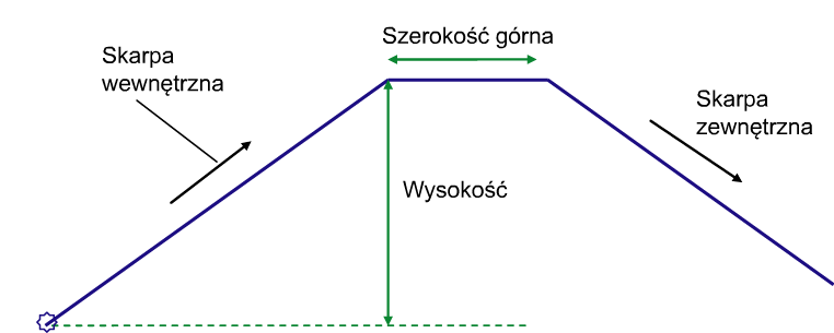| Skarpa wewnętrzna | Nachylenie domyślne połączenia skarpy wewnętrznej bariery. | Liczbowy | 1:1.5 |