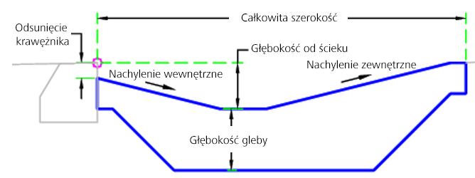 | Odsunięcie krawężnika | Odsunięcie od punktu dołączenia | Liczbowy |