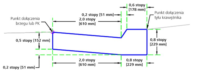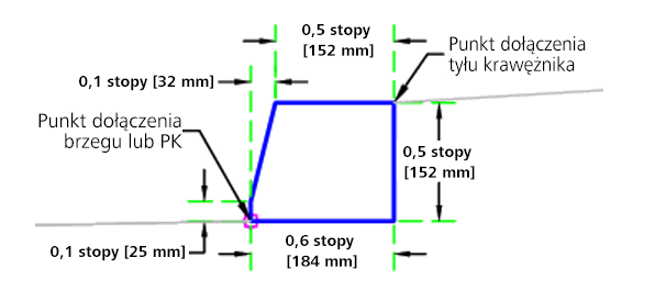 Za pomocą podzespołu CaltransCurbs wstawiane są połączenia tworzące krawężniki i ścieki na podstawie planu standardowego Caltrans Standard Plan RSP A87A.