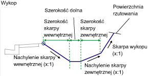 | Skarpa połączenia rzutowania | Skarpa połączenia z istniejącym gruntem | Liczbowy, dodatni | 2 (:1) |