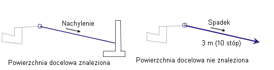 Połączenie jest wydłużane przy określonym nachyleniu w lewo lub prawo od punktu dołączenia do przecięcia powierzchni docelowej.