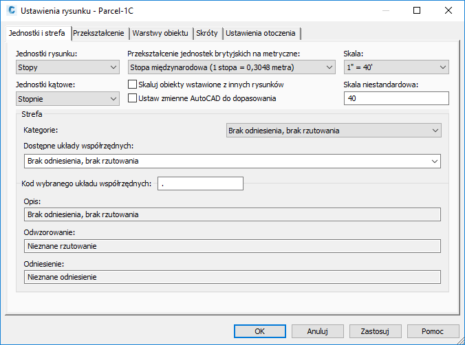 Okno dialogowe Ustawienia rysunku