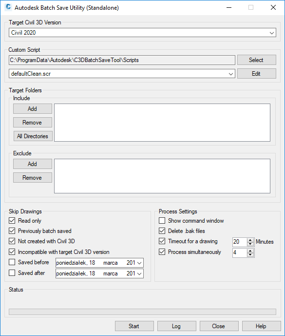 Program Autodesk Batch Save Utility umożliwia otwarcie i zapisanie wielu plików rysunków i szablonów jednocześnie w określonej wersji programu Autodesk Civil 3D.