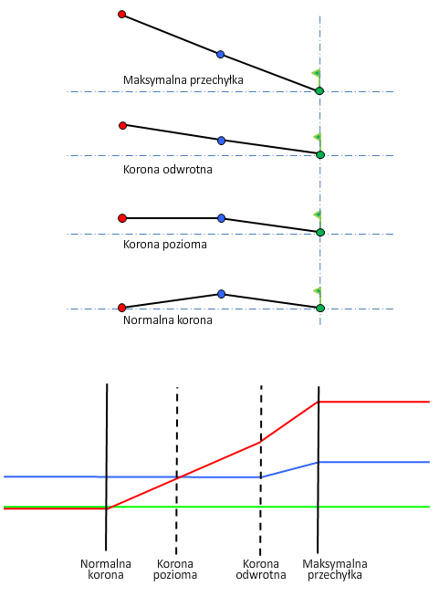 Objaśnienia do diagramów przechyłki zawiera temat Informacje o metodach obrotu osi przechyłki.