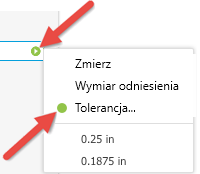Obecnie w ustawieniach wstępnych przechowywane są informacje o tolerancji dla pól wartości. Dostęp do okna dialogowego Tolerancja można uzyskać z menu rozwijanego. Aby przywrócić brak wartości tolerancji, jako Typ tolerancji ustaw Domyślny i zapisz ustawienie wstępne. Gdy wartość ma tolerancję, kontrolka edycji wartości wyświetla kolorowe tło pod wysuwaną strzałką i w menu rozwijanym.