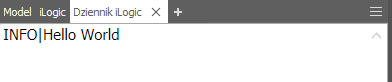 Przykładowo można dodać do reguły Logger.Info ("Hello World"), aby po uruchomieniu reguły utworzyć następujący wpis: