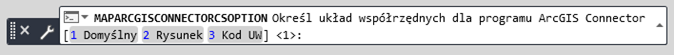 Polecenie MAPARCGISCONNECTORCSOPTION pozwala na określenie układu współrzędnych, który ma być używany podczas importowania danych z pakietu ArcGIS.